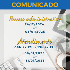 Recesso administrativo 560x560px Por Comunicação Colégio São José|2024-12-19T15:48:32-03:0019/12/2024| Compartilhe essa história! FacebookTwitterRedditLinkedInWhatsAppTumblrPinterestVkE-mail